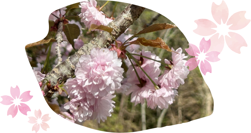 直径約3cm、花弁は60枚にもなり内側の20枚ほどが反転しているのが特徴で、ふっくらとまるまって咲く姿がとても愛らしい桜です。