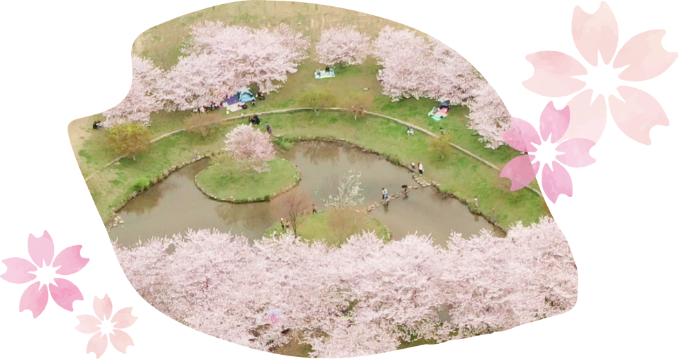 園内では芝生広場のそばに約100本の桜が咲き、ゆったりとのんびりお花見が楽しめます。